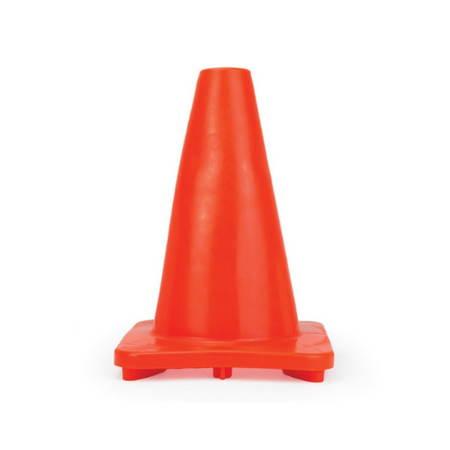 12-Inch Fluorescent Orange Safety Cone made from durable PVC. Each cone weighs 1.2 lbs, providing stability while remaining lightweight for easy transport. Packaged in cartons of 20 cones each, with 6 cartons per layer and up to 5 layers maximum, for a total of 600 cones per pallet. Ideal for construction, roadwork, and safety applications.