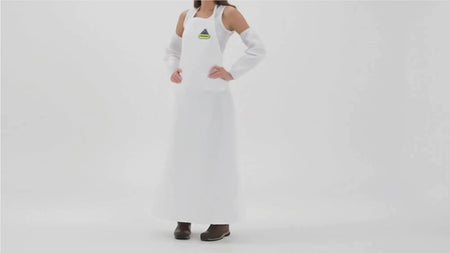 The DEFENDER™ Microporous Apron, boasting serged seams, takes durability to new heights, reinforcing the garment's structural integrity for enduring protection. The bib style ensures comprehensive coverage, safeguarding the wearer's front from potential contaminants. The apron features a bound neck and ties for a secure fit, allowing for ease of movement without compromising safety.