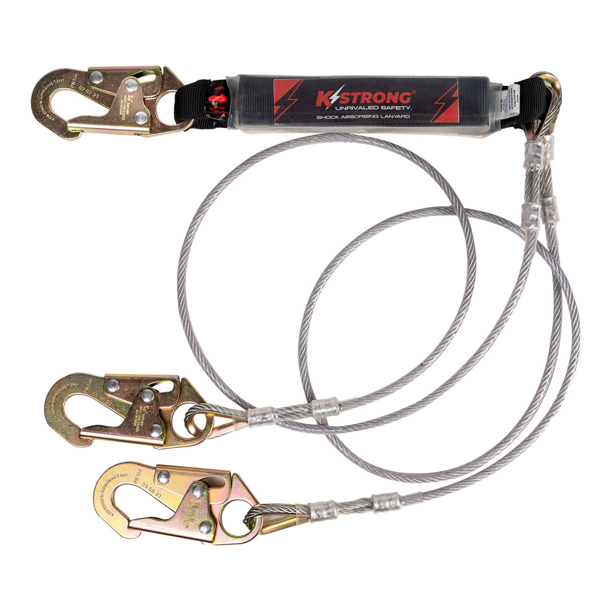 KStrong® 6 ft. Leading Edge (LE) Rated Twin Leg 100% Tie-off Clear Pack Design shock absorbing coated wire lanyard with Snap Hooks. (ANSI)