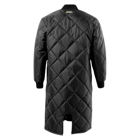 The coat also features four pockets—two large hand-warming pockets located over two pass-through waist pockets, allowing easy access to inner layers. Packaged individually in poly bags for protection and shipped 10 per carton, this coat is both practical and durable for long-term cold storage use.