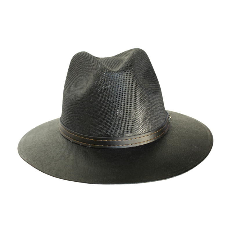 The Black Panama Wanderer Hat with a Leather Band epitomizes timeless sophistication and effortless style. Crafted with meticulous attention to detail, this hat features a classic Panama silhouette adorned with a sleek leather band, adding a touch of refinement to any ensemble. Its versatile black hue makes it a versatile accessory, suitable for both casual outings and formal occasions. Whether you're strolling through the city streets or attending a garden party, this hat promises to elevate your look with its understated elegance and impeccable craftsmanship.