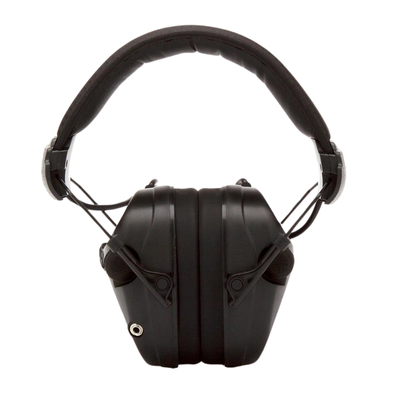 These ear muffs offer an NRR of 26dB and feature height adjustment to fit most head sizes comfortably. They include a fold-away, padded headband for added comfort and convenience. Equipped with a front-facing microphone, these ear muffs amplify hearing while compressing harmful sounds to a safe level. They also feature an auto shut-off function after four hours to conserve battery life. For added versatility, a 3.5 mm AUX jack allows for use with MP3 players and mobile devices. Two AAA batteries are included, and they are available in a VG clamshell for easy storage and transport.