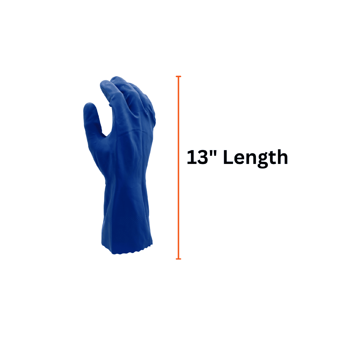 Stay protected and productive with these dependable latex rubber gloves, designed for daily use in cleaning, sanitation, and general-purpose tasks. Made from high-quality blue latex, these gloves feature a 15 mil thickness and a 13-inch length, offering reliable barrier protection while maintaining flexibility and comfort. The embossed grip enhances control when handling wet or slippery objects, improving safety and efficiency on the job.