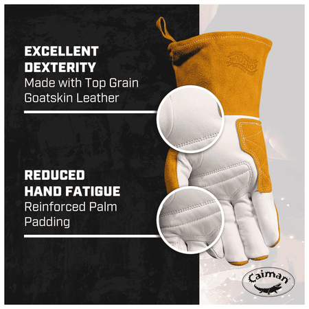 Caiman Premium Goat Grain TIG Welding Glove and 4 inch Extended Cuff Features