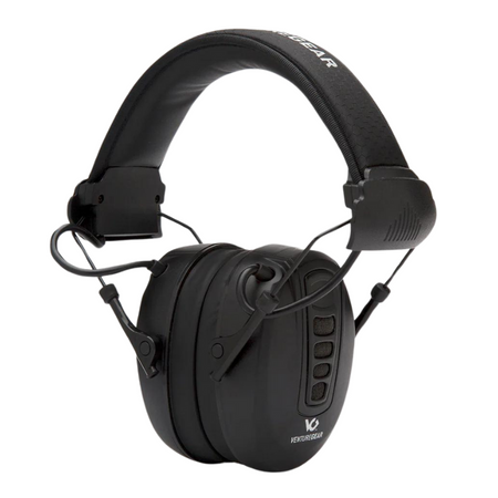 The NRR 24dB earmuffs feature slim profile ear cups and omnidirectional microphones that amplify hearing while compressing harmful sounds to safe levels. Designed for convenience, they collapse for easy storage and have external access for quick battery replacement. The package includes 2 AAA batteries and is available in a VG capture clam.