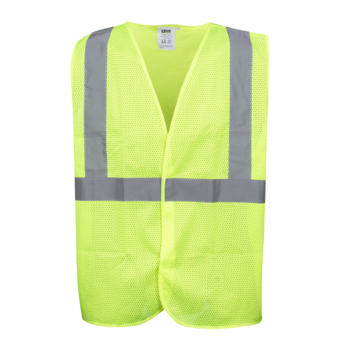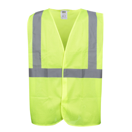 Stay visible and safe with this Type R, Class 2 safety vest made from hi-vis lime polyester mesh. Featuring 2-inch reflective tape, a hook & loop closure, and machine-washable durability, it's perfect for general-purpose use, including food-contact applications (FDA-compliant materials).