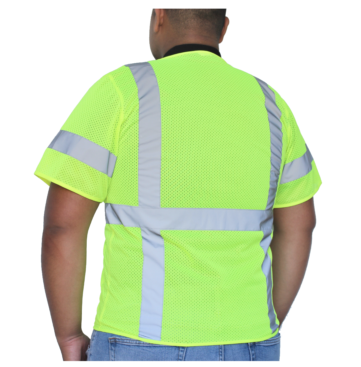 Stay visible and safe in low-light conditions with our fluorescent lime green safety vest, featuring 2-inch wide silver reflective stripes on the front, back, and sleeves.