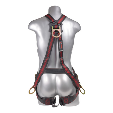 | D-Rings | One dorsal (fall arrest), one front (climbing), two side (work positioning) |