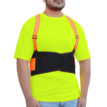 Our BB800FO Hi-Vis Industrial Back Support Belt is designed to provide both comfort and visibility. The 1-1/4" orange elastic suspenders come with adjustable clips, allowing you to customize the fit for maximum support. The tapered and adjustable abdominal support panels offer targeted reinforcement to your lower back, reducing strain during demanding work activities.