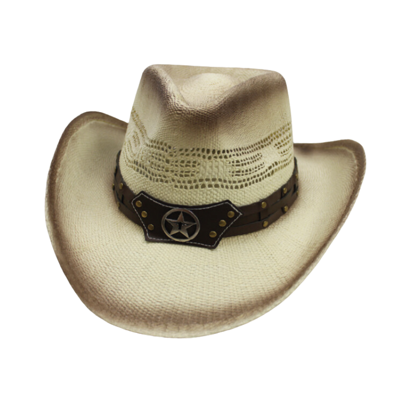 Ember Straw Western Outback Cowboy Hat with Star Emblem