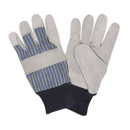 Experience superior protection and durability with our Gunn Cut Leather Gloves. Crafted from select shoulder split leather, these gloves feature a gunn cut pattern, providing enhanced comfort and flexibility. The leather fingertips, reinforced index and thumb, and knuckle strap ensure reliable protection, while the striped canvas back offers breathability. Designed for heavy-duty tasks, the blue knit wrist delivers a secure fit, keeping debris out.