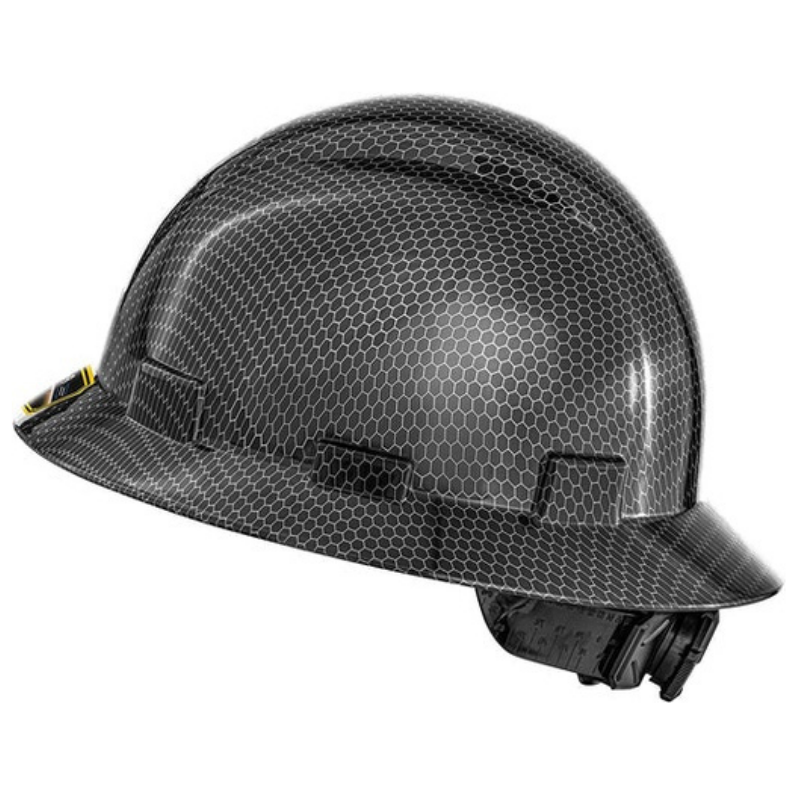 Add a touch of sophistication and elegance to your work attire with unique patterns and vibrant colors achieved through the hydro dipping process, guaranteeing lasting durability. Suitable for various industries such as construction, industrial, electrical, utility, safety, rescue, and energy applications, these carbon fiber full brim hard hats are designed for both men and women. Experience the perfect blend of protection and style with our contemporary full brim hard hats.