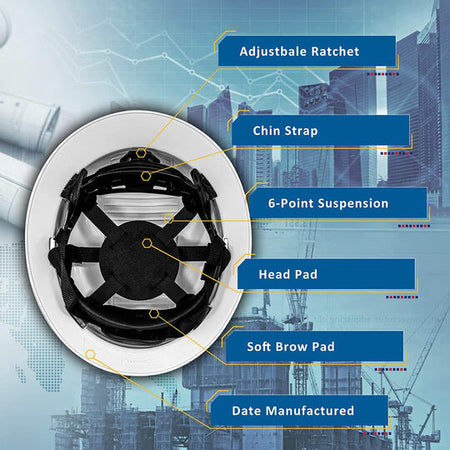 GREAT COMFORT FOR LONG WORKDAYS: Indulge in optimal comfort with our hard hats' 6-point adjustable suspension and ratchet system, guaranteeing a secure and personalized fit. Experience enhanced coziness with the soft, washable brow, and head pads that effectively wick away sweat, ensuring a pleasant day at work.