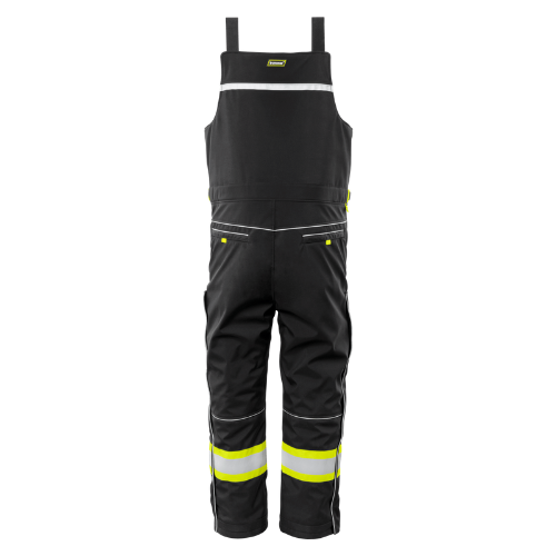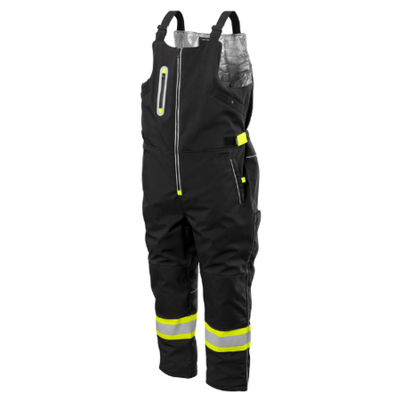 For added visibility and safety, the overalls feature two-tone, 2" reflective tape over 4" contrasting fabric. The garment also offers plenty of storage, with 5 pockets, including a zippered chest wallet pocket, upper hand warmer pockets with snap closures, and multiple waist and back pockets with zippers. Hook and loop leg openings and retractable pull tabs behind the waist allow for an adjustable, snug fit.