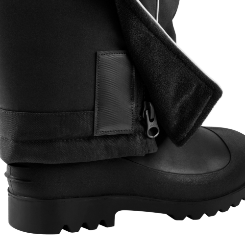 | Leg Openings | Hook and loop openings with zippers for easy boot access |