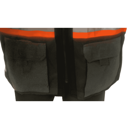 - High-visibility design: Neon orange color with 2" wide silver reflective strips trimmed in neon green
