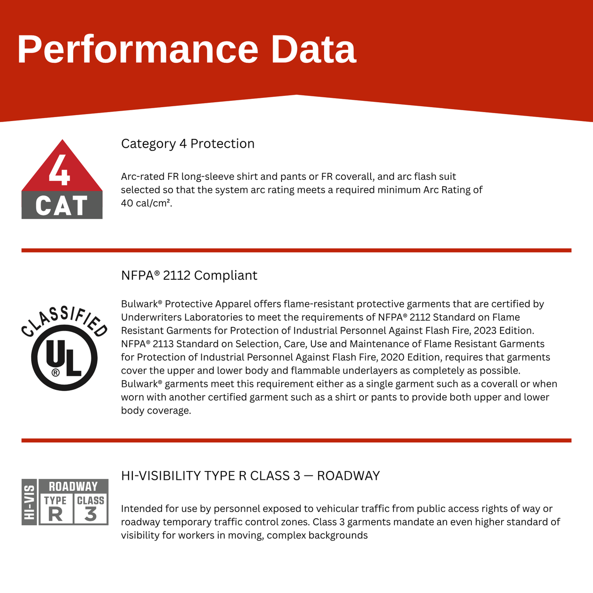- Arc Rating ATPV 45 cal/cm² – Category 4 Protection