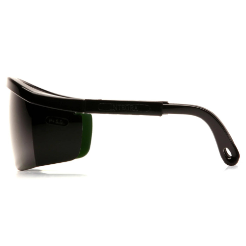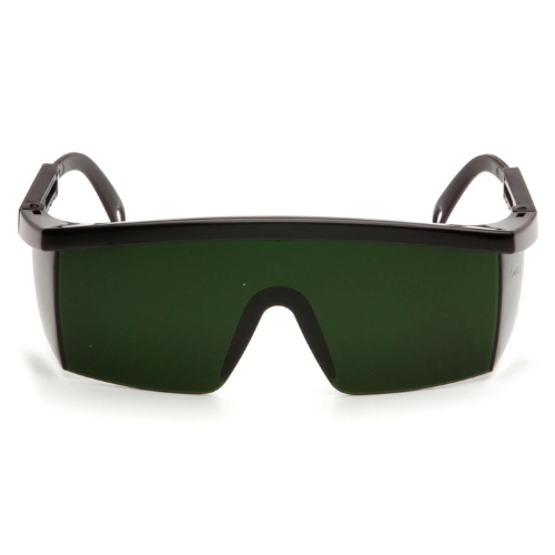 This eyewear features a single lens design and adjustable temples, ensuring a reliable and customizable fit for various applications. The lens is crafted from scratch-resistant polycarbonate, offering superior protection with 99% coverage against UVA, UVB, and UVC rays.