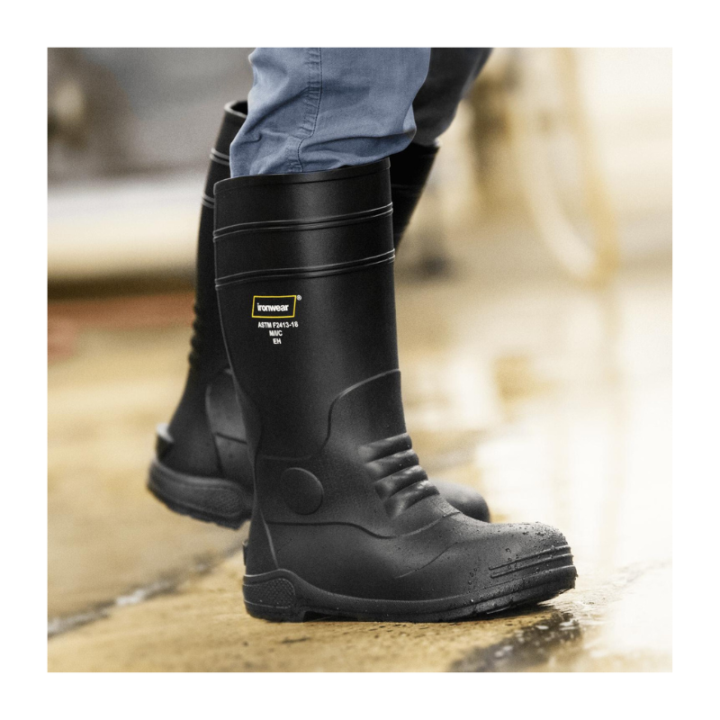 Experience comfort and durability with our 15.5" tall EVA boots, crafted from 90% EVA and 10% rubber. Perfect for food and oil industries, these boots feature a premium PU insert insole and slip-resistant rubber treaded soles with anti-clog channels. With a composite safety toe cap meeting ASTM F2413 standards, these boots offer puncture resistance. Designed for easy removal and customization, they come packaged 1 pair (PR) per box, 6 pairs per carton (CTN)