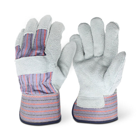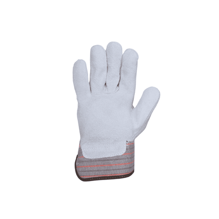 Tackle tough jobs with confidence using these rugged gloves built for protection and durability. The 1052 leather palm glove features a regular split cowhide leather palm and a sturdy Gunn cut pattern for a comfortable fit and extended wear life. Reinforced with a leather knuckle strap and a rubberized cuff, these cowhide shoulder split leather work gloves are designed to shield your hands from impact, abrasion, and debris on the jobsite.
