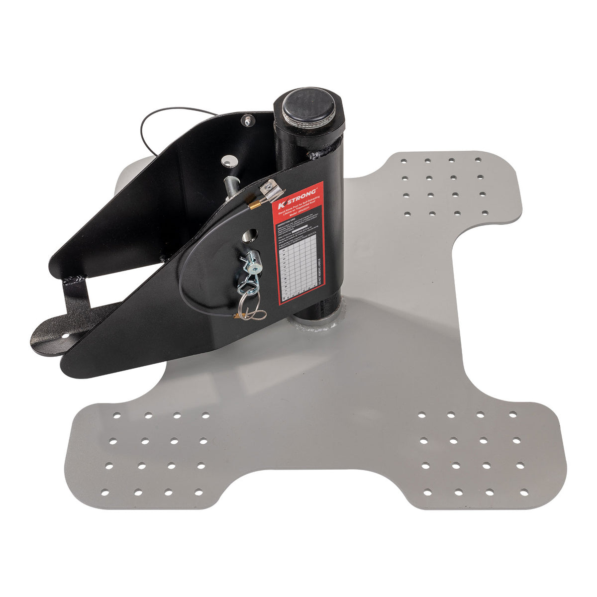 The KStrong® Swivel Receiving Anchor is designed for use on metal roof decks, providing a secure and reliable anchorage point for SRLs (Self-Retracting Lifelines). This anchor post is suitable for metal pitched roofs and can be easily fixed using suitable fasteners. It is compatible with all KStrong retractable fall arrester blocks, allowing for 360° rotation to ensure maximum safety and mobility. The anchor is easy to install, reusable, and constructed from high-strength alloy steel with an ED coated black finish for durability. It meets or exceeds ANSI Z359.18-2017 Type A standards.