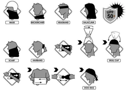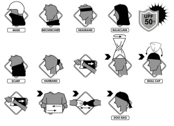 | Versatile Use | Can be worn as a mask, neckerchief, headband, balaclava, scarf, hairband, full cap or doo rag. |