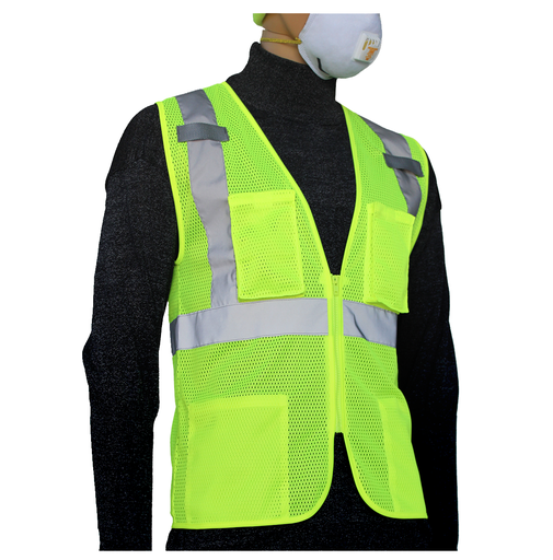 Multipocket Safety Vest – Class 2 High-Visibility Lime Mesh, SV712FG
