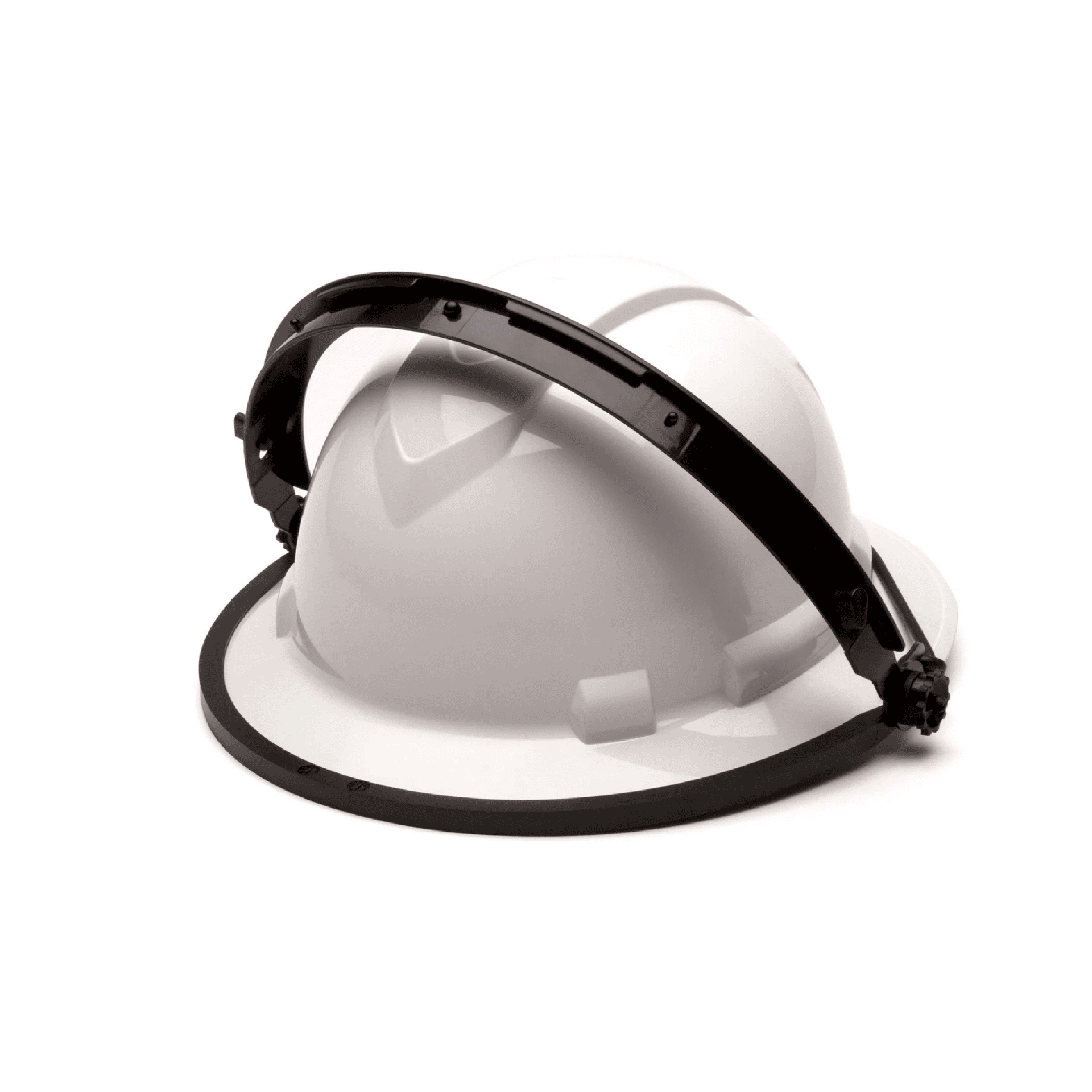 The Pyramex hard hat adapter is a dielectric, full brim solution engineered for dependable face shield support in demanding work environments. Constructed from high-impact ABS resin, this rugged adapter fits securely on most full brim hard hats, offering a stable and non-conductive mounting platform for various face shields. Because of its simple design and adjustable tension system, it ensures a secure hold even during active use.