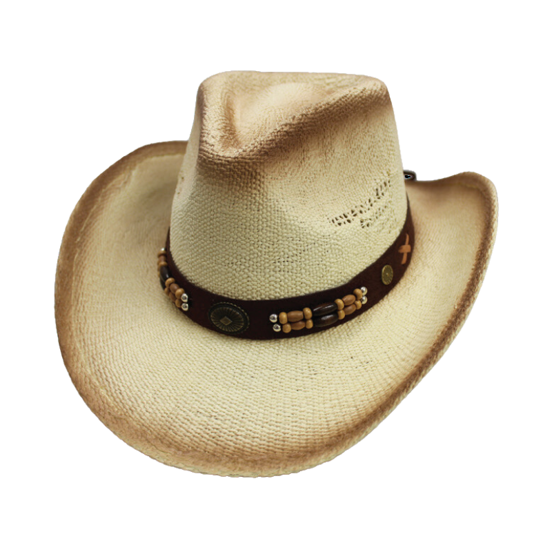 Singed Tea Stain Western Cowboy Hat with Beaded Band