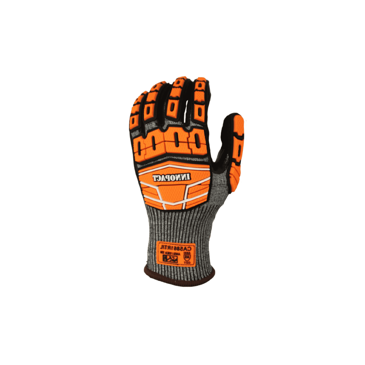 - Gauge and Coating Details: These gloves feature a 15 gauge shell for optimal balance between protection and tactile sensitivity. The salt & pepper shell with a black coating and orange TPR highlights make them visually striking.