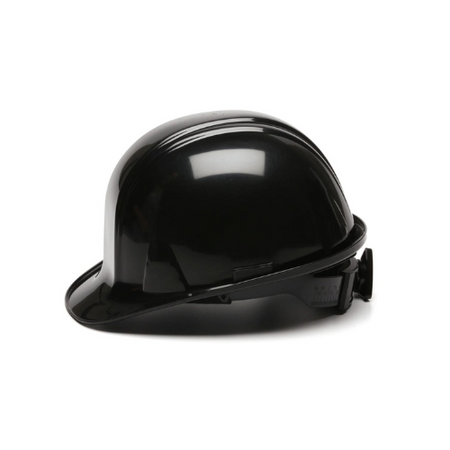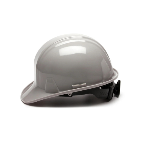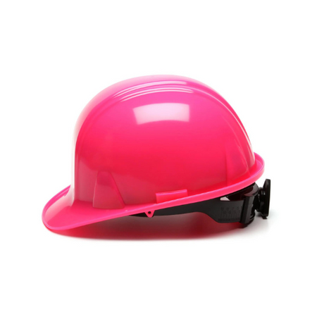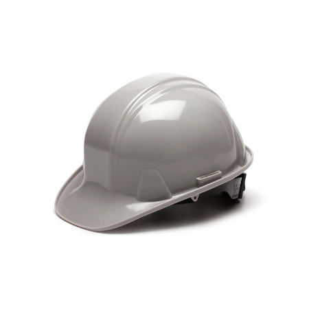 The Pyramex 4-Point Ratchet Suspension Hard Hat combines durability and comfort in a low-profile design. Constructed from high-density polyethylene, this hard hat is built to withstand tough conditions while offering a secure and comfortable fit. The rain trough channels moisture away from the sides and back of the helmet, while universal accessory slots accommodate cap-mounted ear muffs, chin straps, and other gear. The adjustable ratchet suspension allows for easy modifications of fit, even while wearing the helmet. This hard hat exceeds ANSI Z89.1 Standards and CSA Z94.1-15 requirements, and is available in high-visibility colors that have been tested for the HV mark. It also features a replaceable and washable soft brow pad for added comfort.