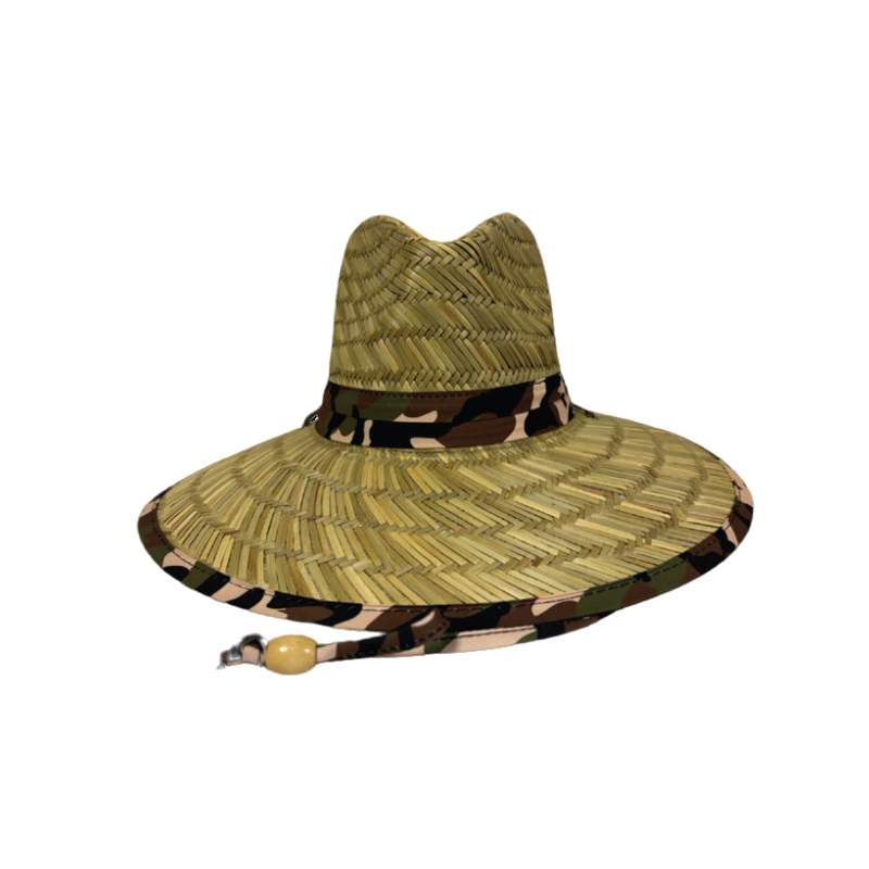 Green Camo Print Straw Hat – Wide Brim Sun Protection