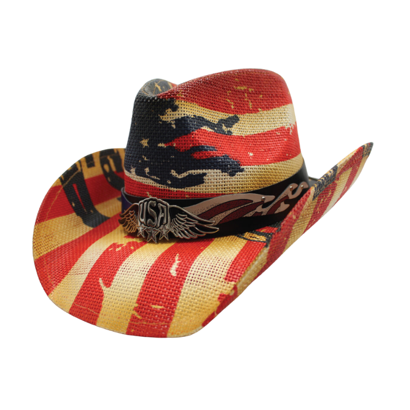 Get ready to wrangle with style in our Western Cowboy Hats! Crafted from 100% paper straw, these hats feature a tea stain blazin USA design with a USA badge.