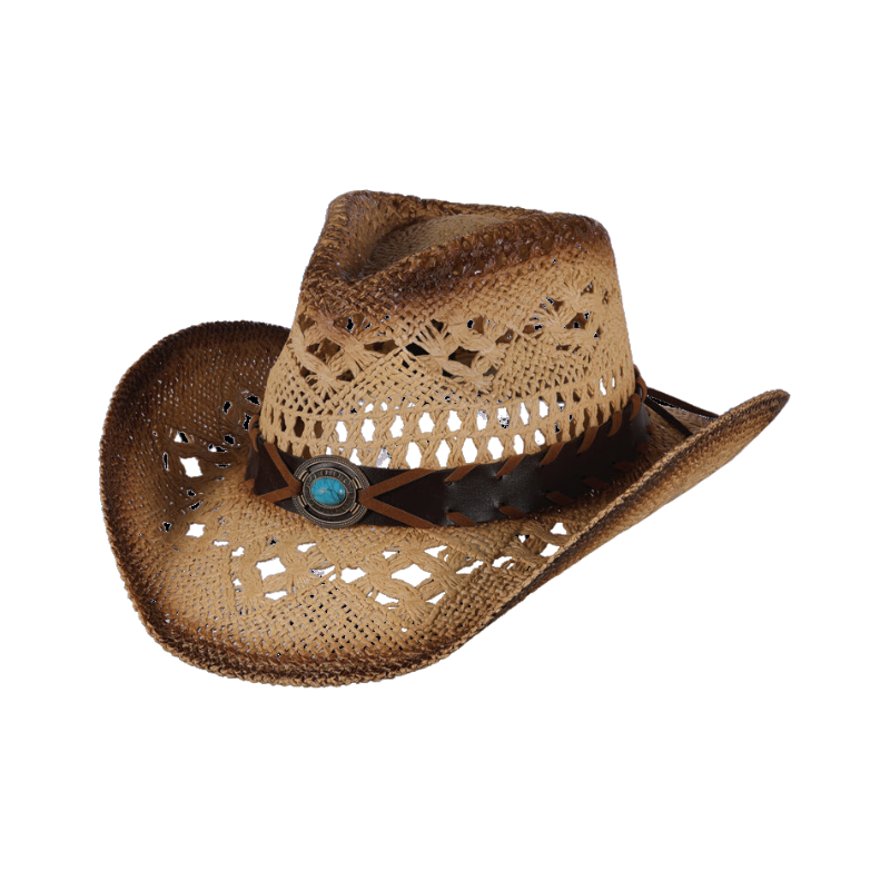 Two Tone Hollow Cowgirl Hat with Turquoise Conch