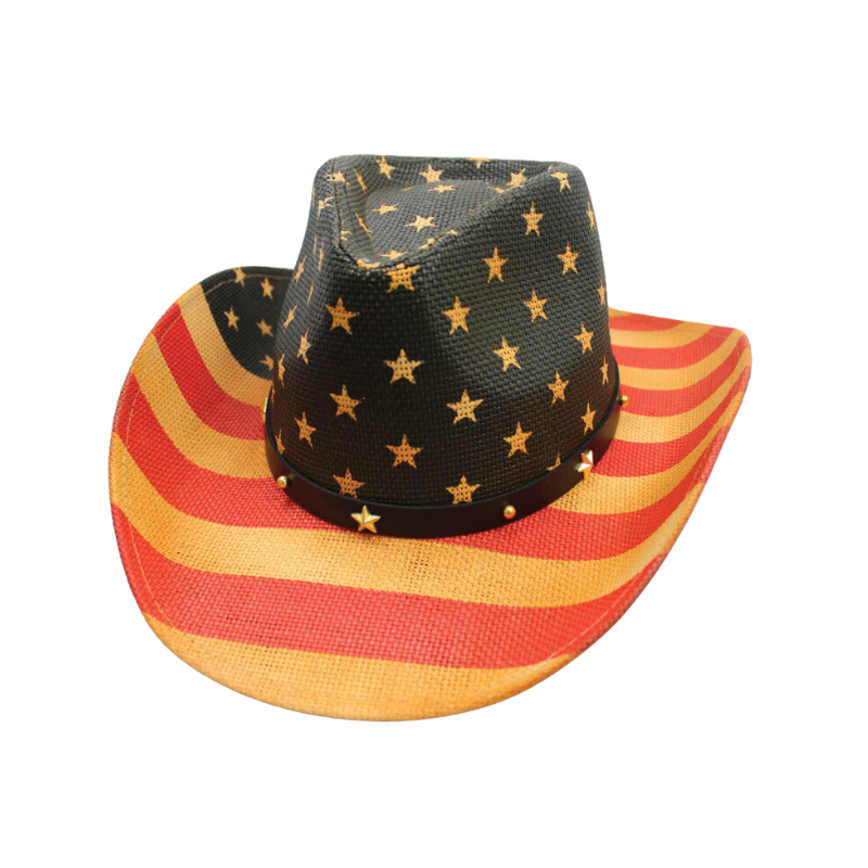 | Description | Saddle up and show your patriotic pride with our Red, White, and Blue Cowboy Hat! This unisex USA-themed cowboy hat boasts a vintage-style stars and stripes flag print, complete with a star-embellished hat band, designed to evoke the spirit of the American frontier. |