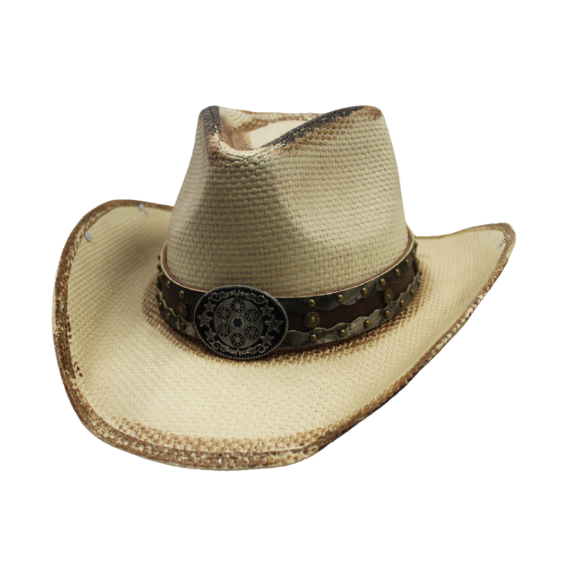 Introducing our Vintage Western Straw Cowboy Hat adorned with a classic Concho emblem, meticulously crafted from 100% straw for enduring quality and breathability. This timeless Western accessory exudes vintage charm and style, making it a standout addition to any ensemble. The Concho emblem adds a touch of rustic elegance to the hat's design, showcasing iconic Western motifs with a nod to tradition. Whether you're out on the ranch or exploring the city streets, this hat provides both comfort and flair. With its durable construction and lightweight feel, the Vintage Western Straw Cowboy Hat offers unmatched versatility and sophistication, ensuring you stand out in any crowd while staying cool and protected from the sun's rays.