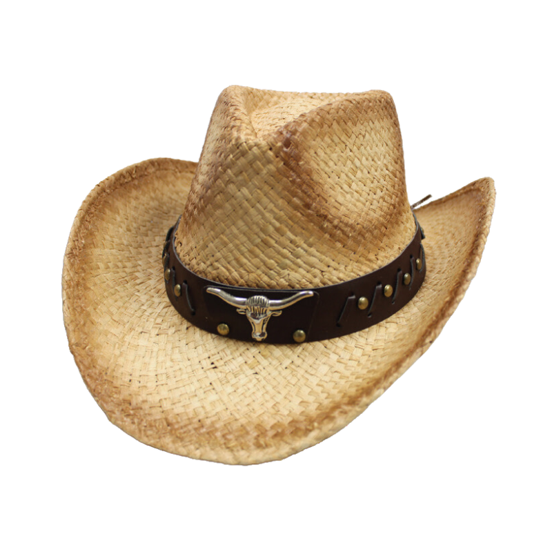 Introducing the epitome of rustic charm and western flair: the Western Tea Stain Cowboy Hat with Bull Emblem. Crafted meticulously from 100% straw, this hat embodies the spirit of the open range and the rugged frontier. Its timeless design combines classic elements with modern comfort features, ensuring a perfect fit for most wearers thanks to the elastic sweatband nestled within.