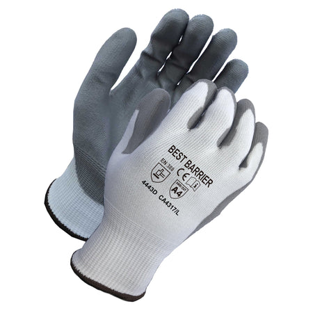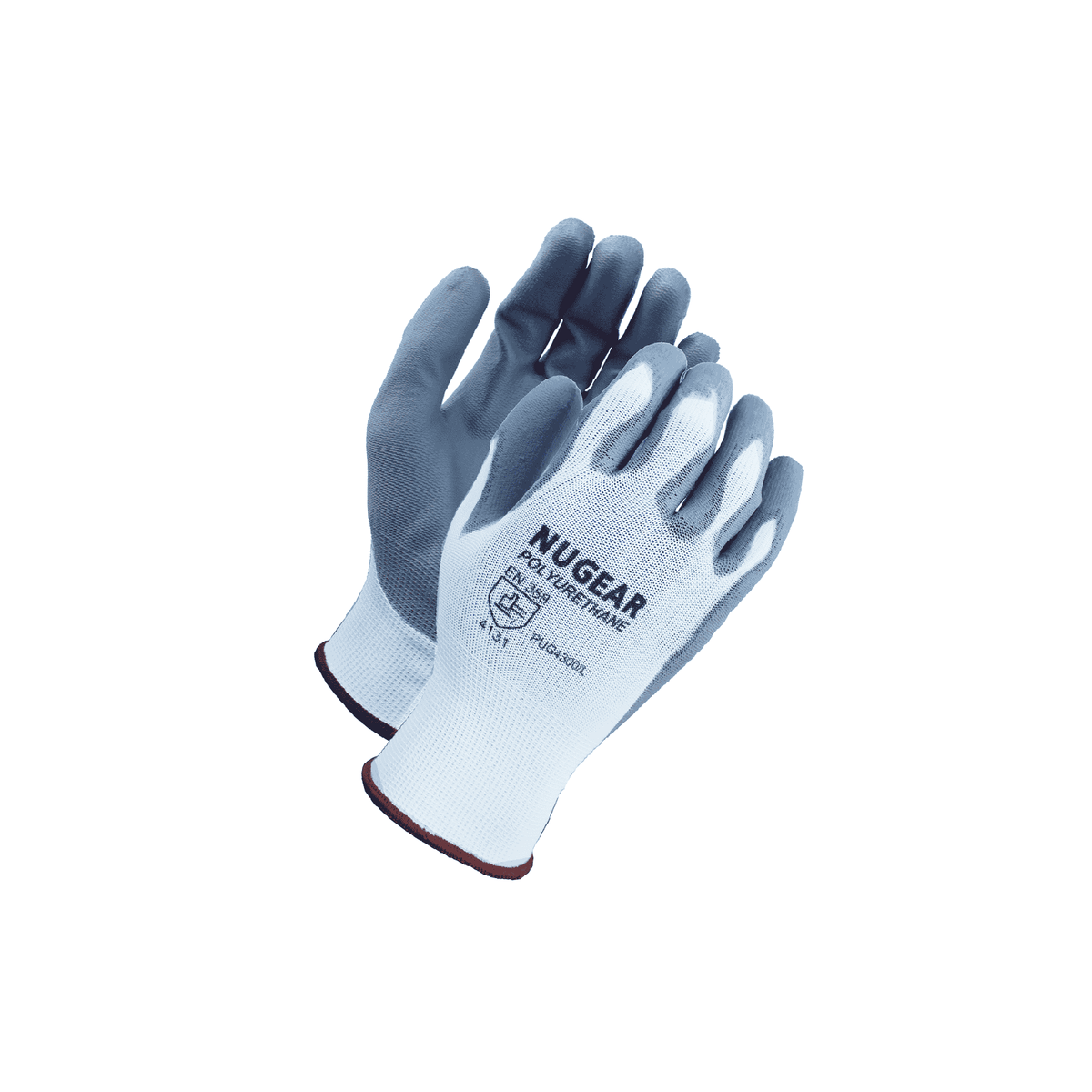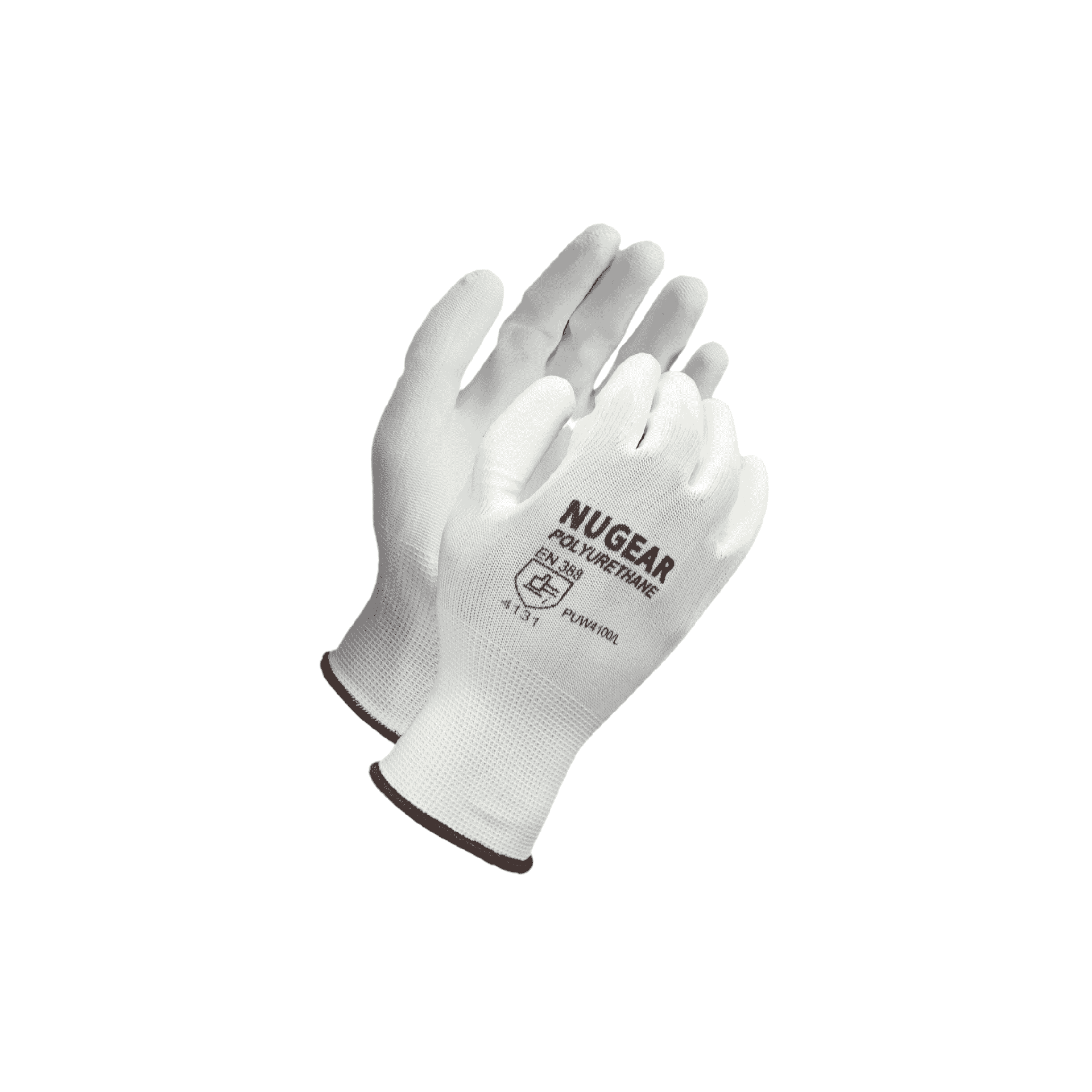 Enjoy superior grip and comfort with these white polyester gloves. The white polyurethane coating on the palms and fingers provides excellent abrasion resistance and durability. The seamless, 13-gauge polyester fiber knit shell adds extra flexibility, ensuring a comfortable fit. With an EN388 rating of 4131X, these gloves are great for light industrial work, warehousing, and packaging. Don't sacrifice performance for comfort; choose these gloves for optimal protection and tactile sensitivity. Available in multiple sizes to fit your needs.